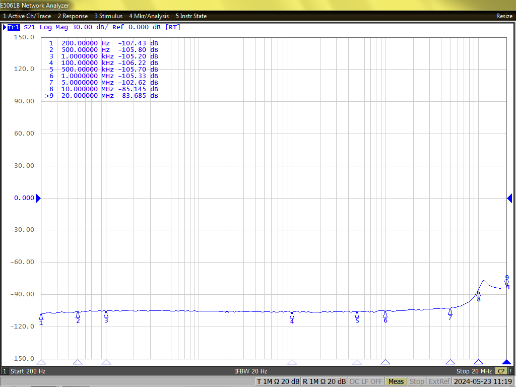 負載阻抗為1MΩ時:轉(zhuǎn)移阻抗(dB)=s21+34dB+6dB+25dB。