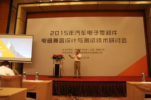 8月19日,蘇州泰思特攜手程智電子科技(上海)有限公司在中國汽車產業的集中地---上海安亭(昆山希爾頓逸林酒店)共同舉辦了2015年汽車電子零部件電磁兼容技術的交流盛宴。會議規模創歷史新高,全國各地的知名汽車電子廠商共聚一堂,來自上海汽車、大眾汽車、吉利汽車、北汽集團、奇瑞汽車等十余家車廠以及八十余家汽車零部件廠商,共120余人參加了本次研討交流。